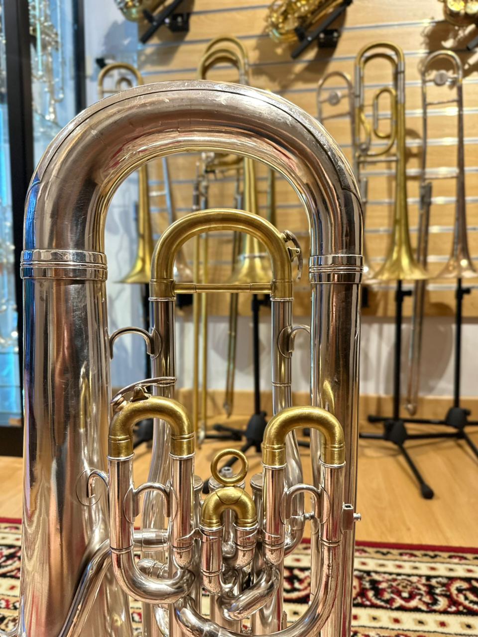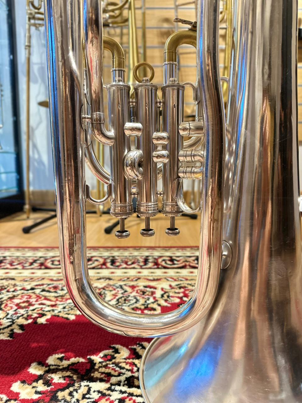 This used euphonium is in very good playing condition. The valves operate smoothly, slides function properly, and the instrument has been professionally checked to ensure reliable performance. Cosmetic signs of use are present and consistent with normal wear, but they do not affect playability or sound quality.