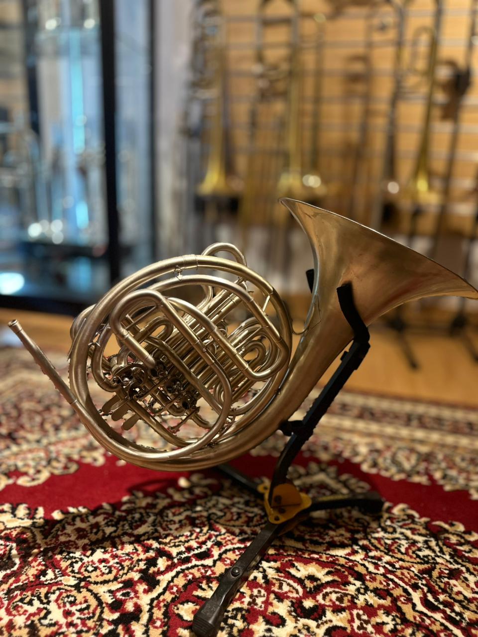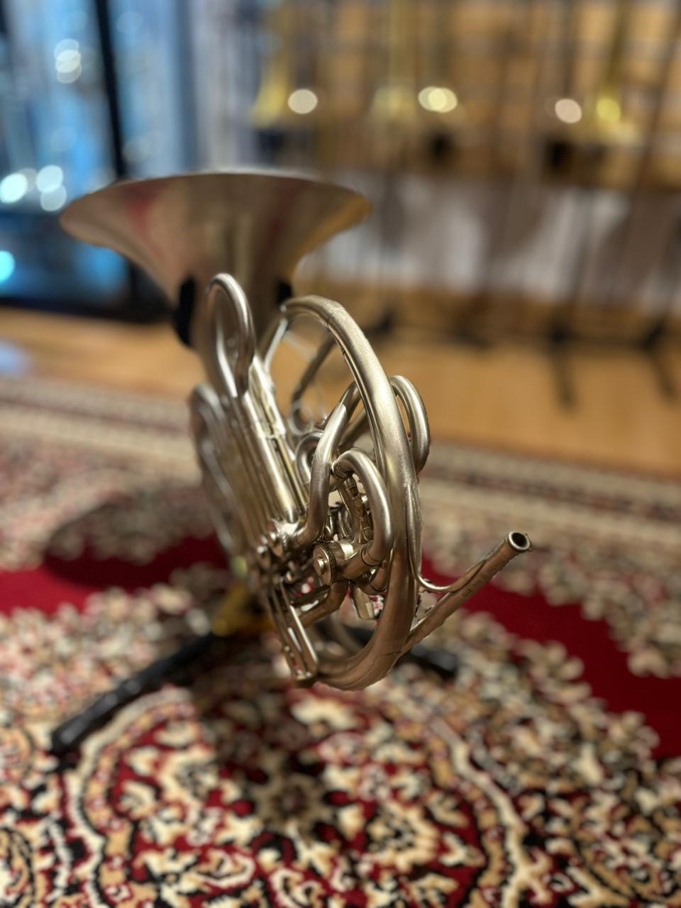 This used instrument is in very good playing condition. The rotary valves operate smoothly, slides function properly, and the horn has been professionally inspected to ensure reliable performance. Cosmetic wear is present, consistent with normal use and age, but does not affect sound or playability.