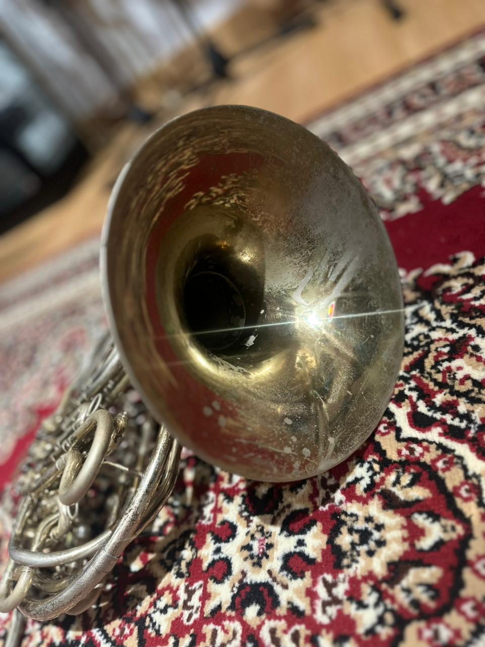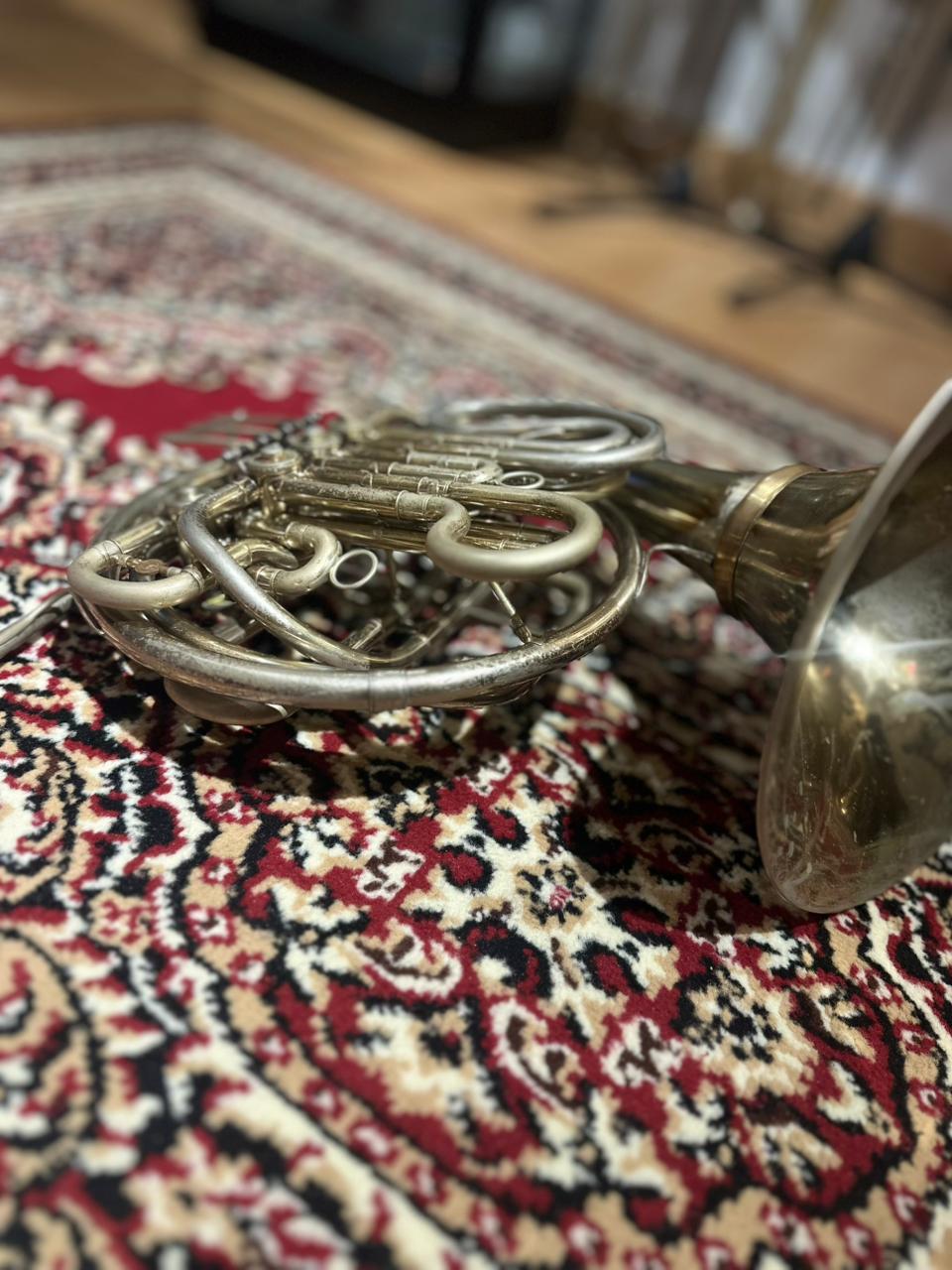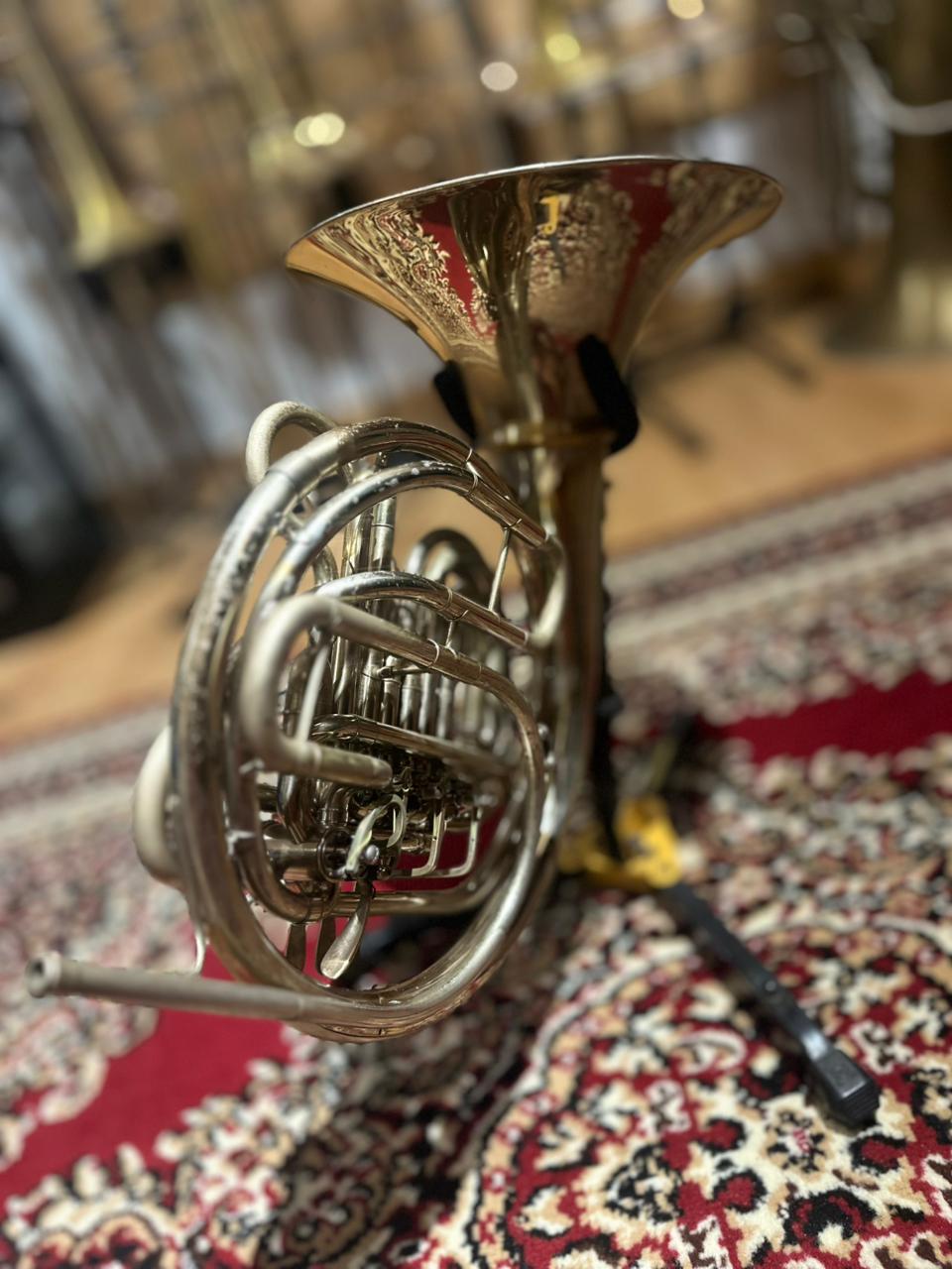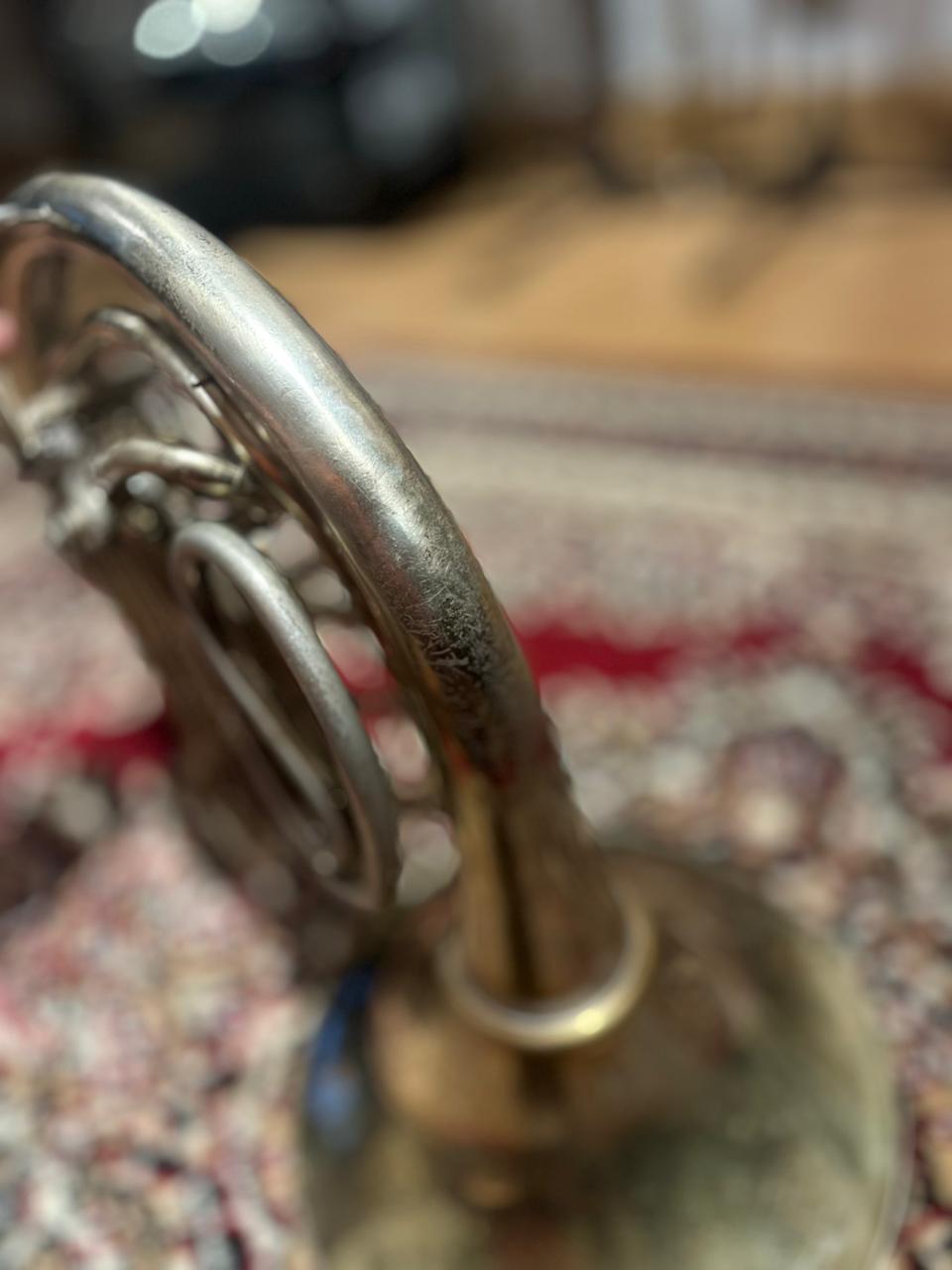 This used instrument is in very good playing condition. The rotary valves operate smoothly, slides function properly, and the horn has been professionally inspected to ensure reliable performance. Natural cosmetic wear is present, consistent with its age, but does not affect sound or playability.