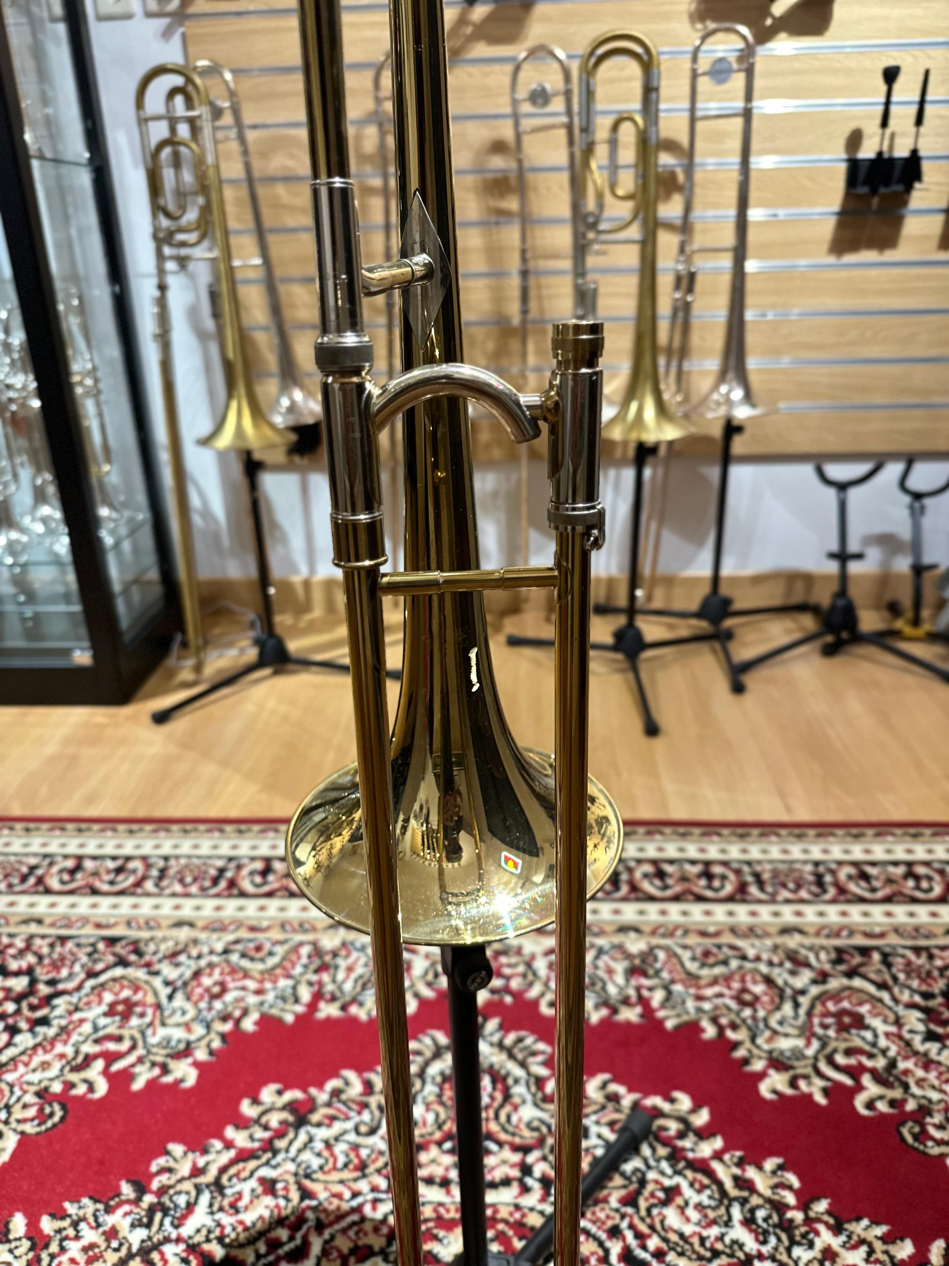 This model includes three interchangeable leadpipes, allowing the player to adjust response and feel according to personal preference and performance needs. The chrome-plated nickel silver inner handslide tubes provide smooth, fast slide action for precise control.