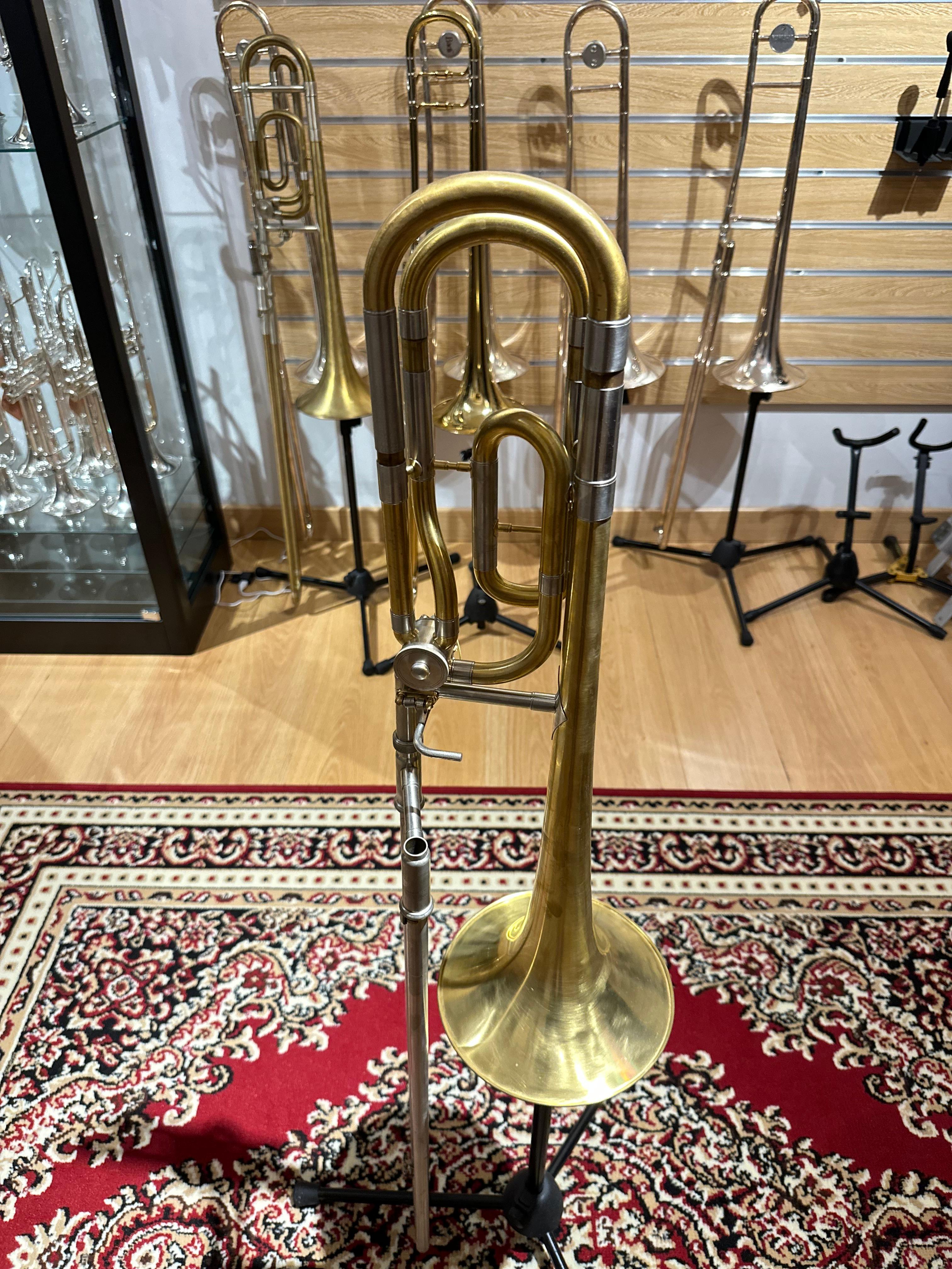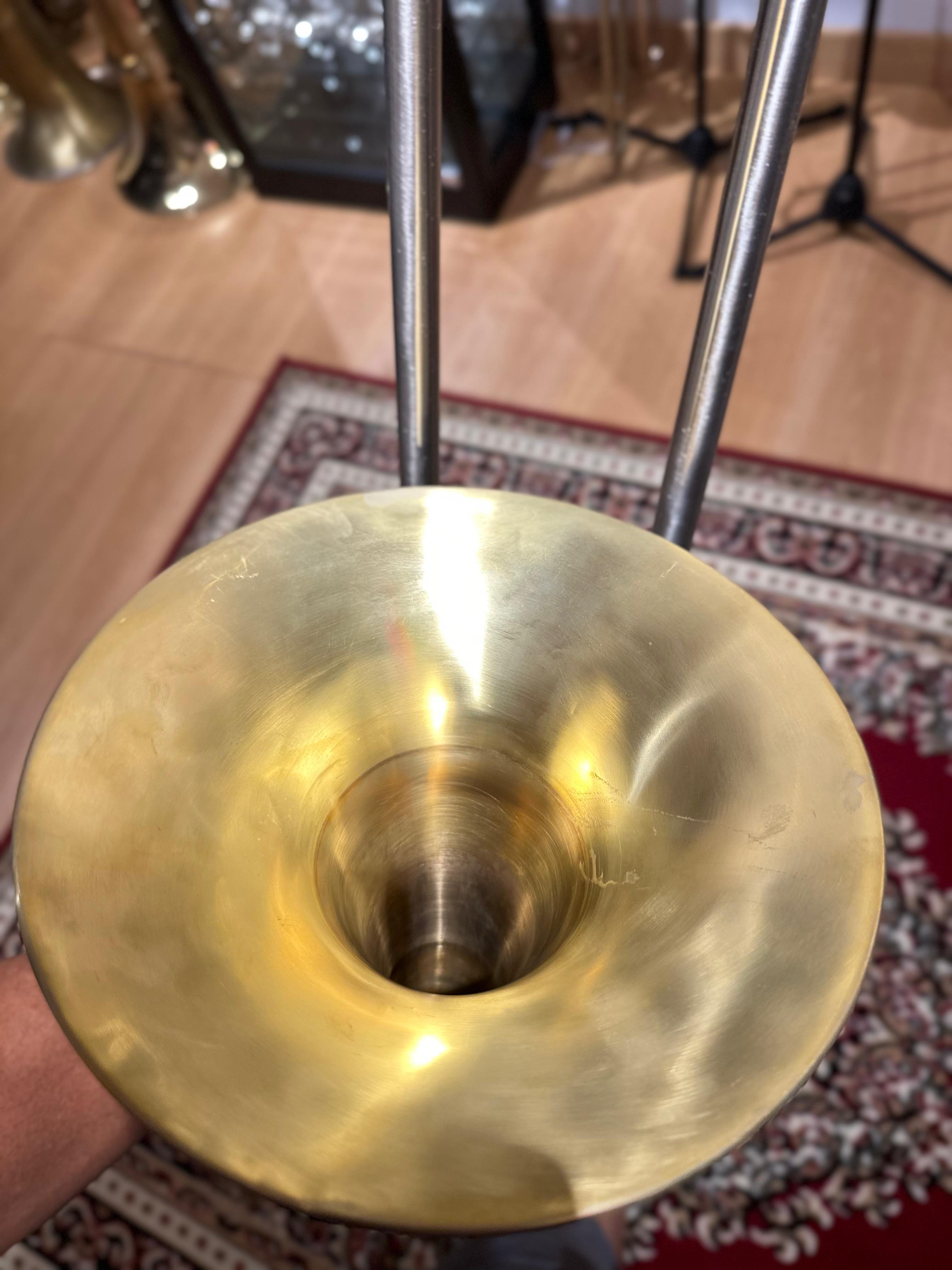 This used trombone is in very good playing condition. The slide moves smoothly with proper alignment, the F-attachment functions well, and the instrument has been professionally inspected to ensure reliable performance. Cosmetic wear and natural oxidation are present, consistent with raw brass and normal use, and do not affect sound or playability.