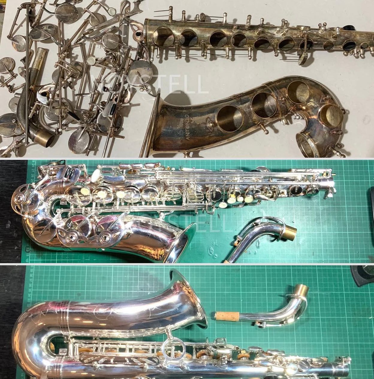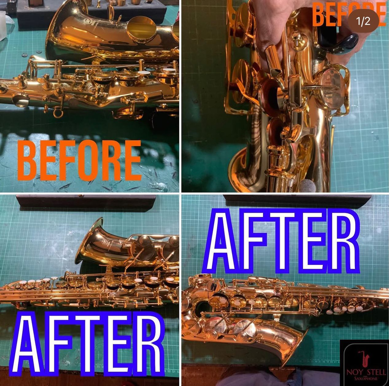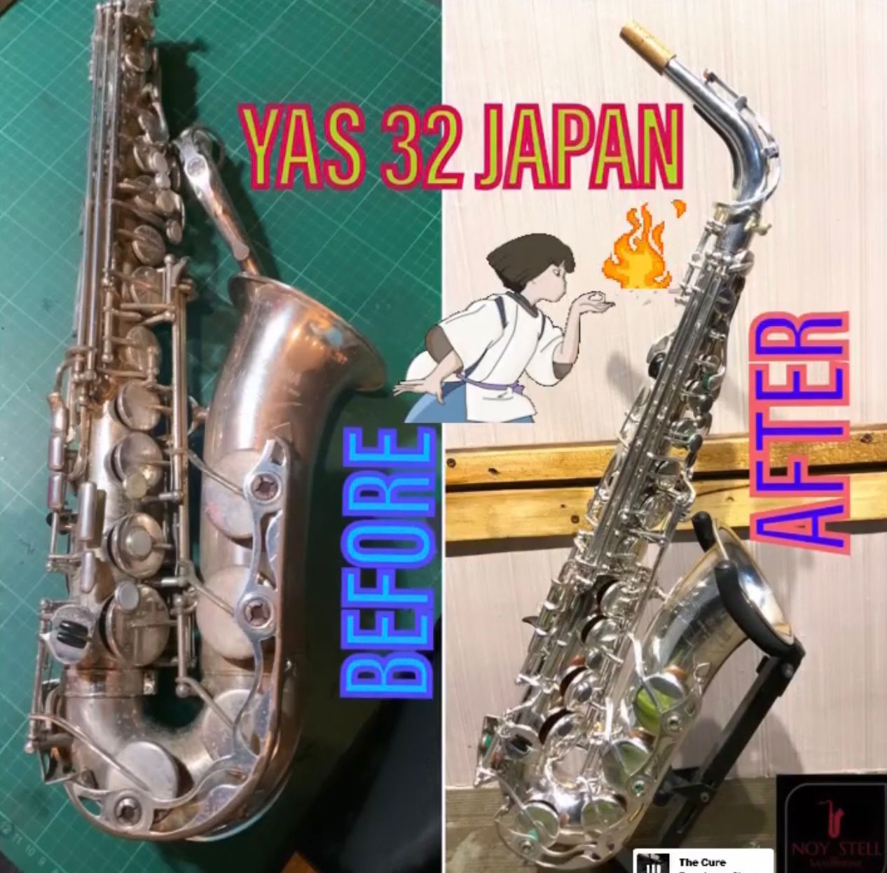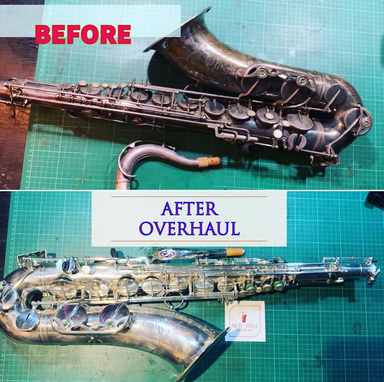 Before and after restoration handled by Nosytell Music Store.