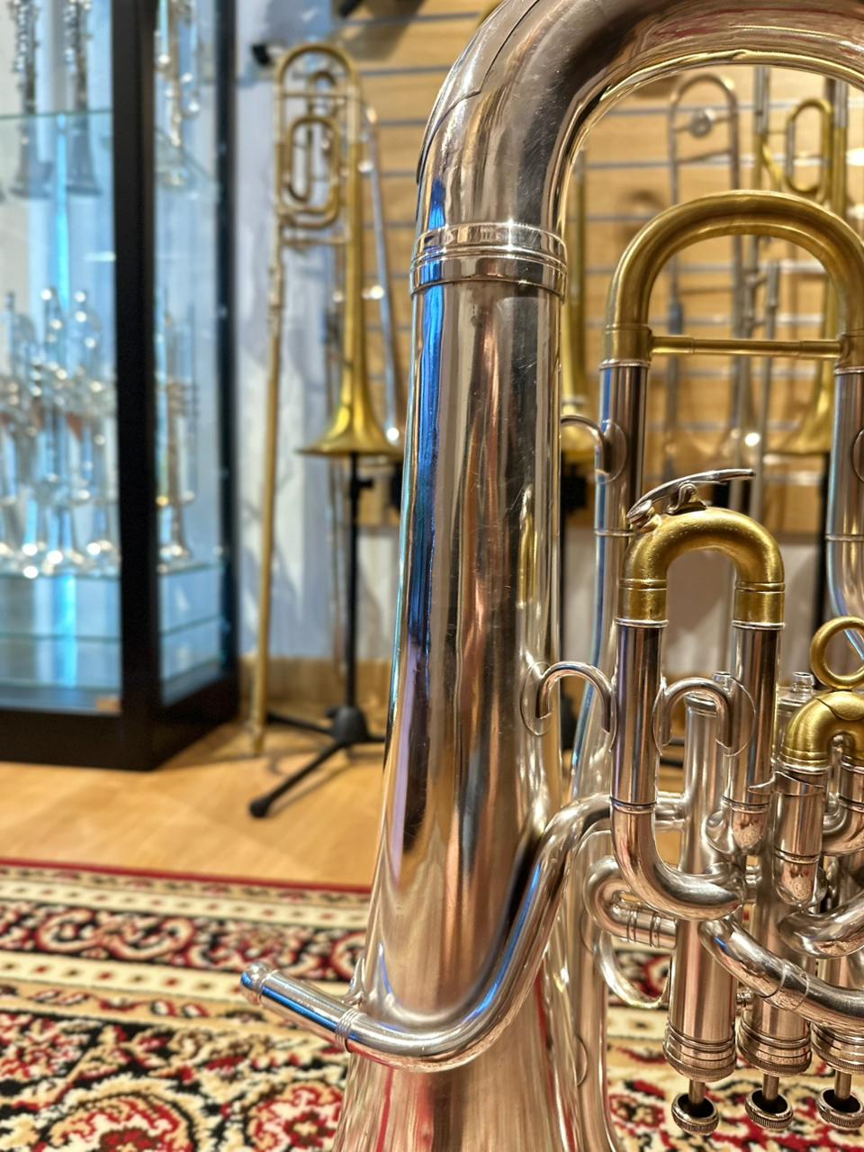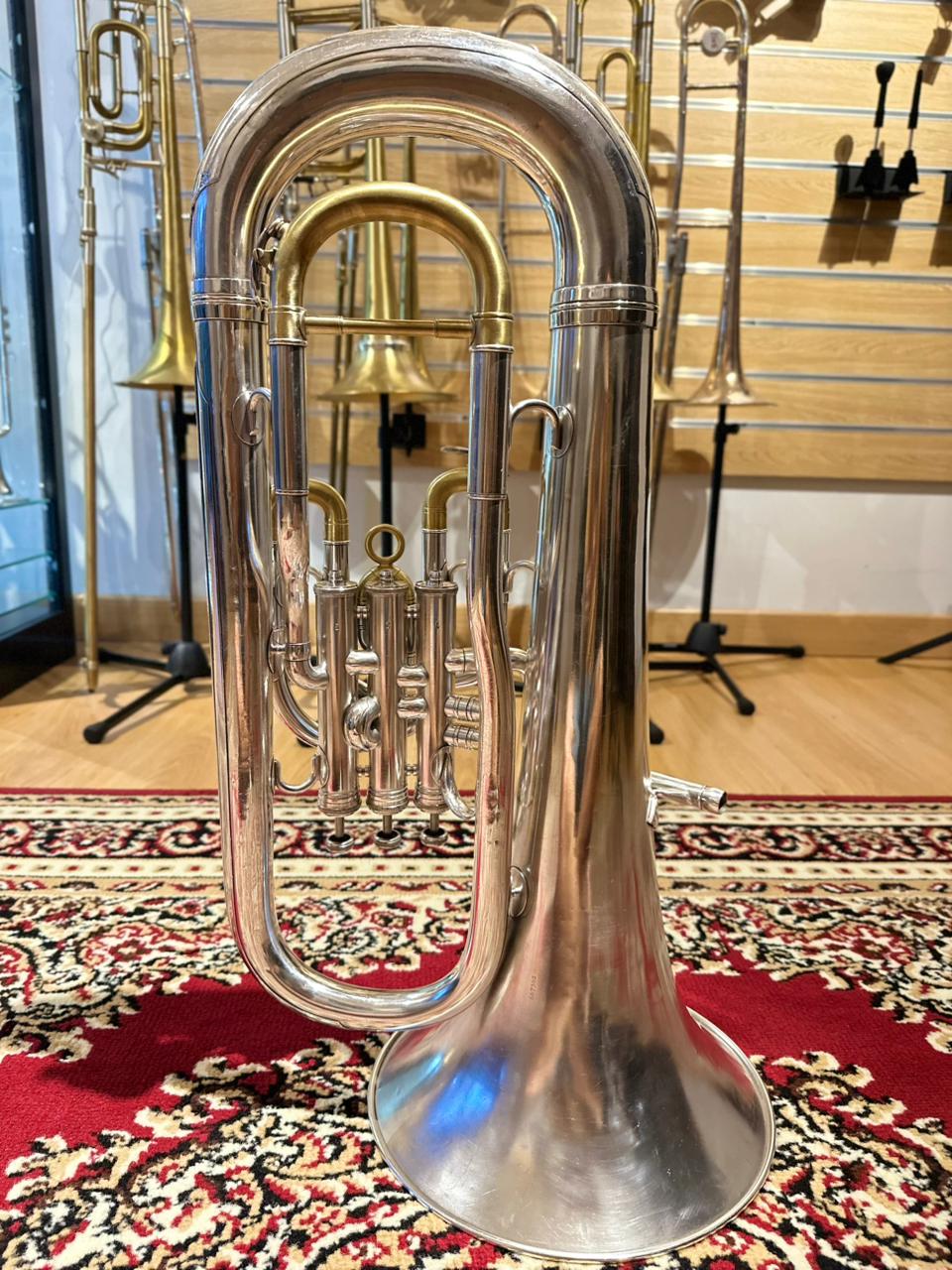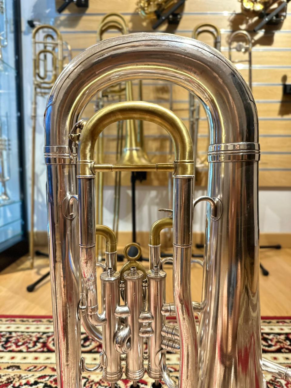 This used euphonium is in very good playing condition. The valves operate smoothly, slides function properly, and the instrument has been professionally checked to ensure reliable performance. Cosmetic signs of use are present and consistent with normal wear, but they do not affect playability or sound quality.