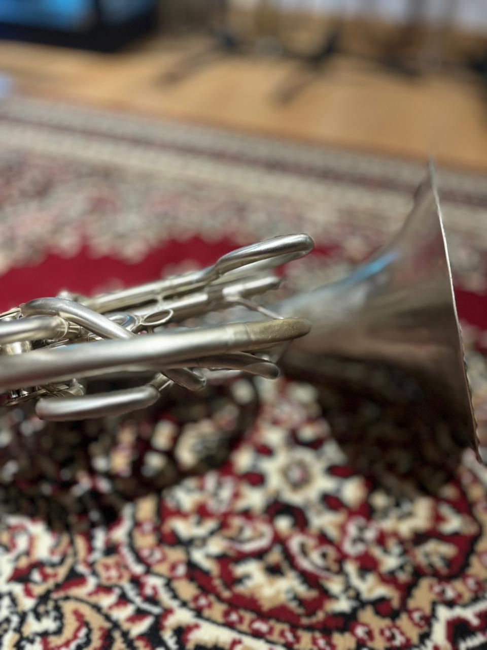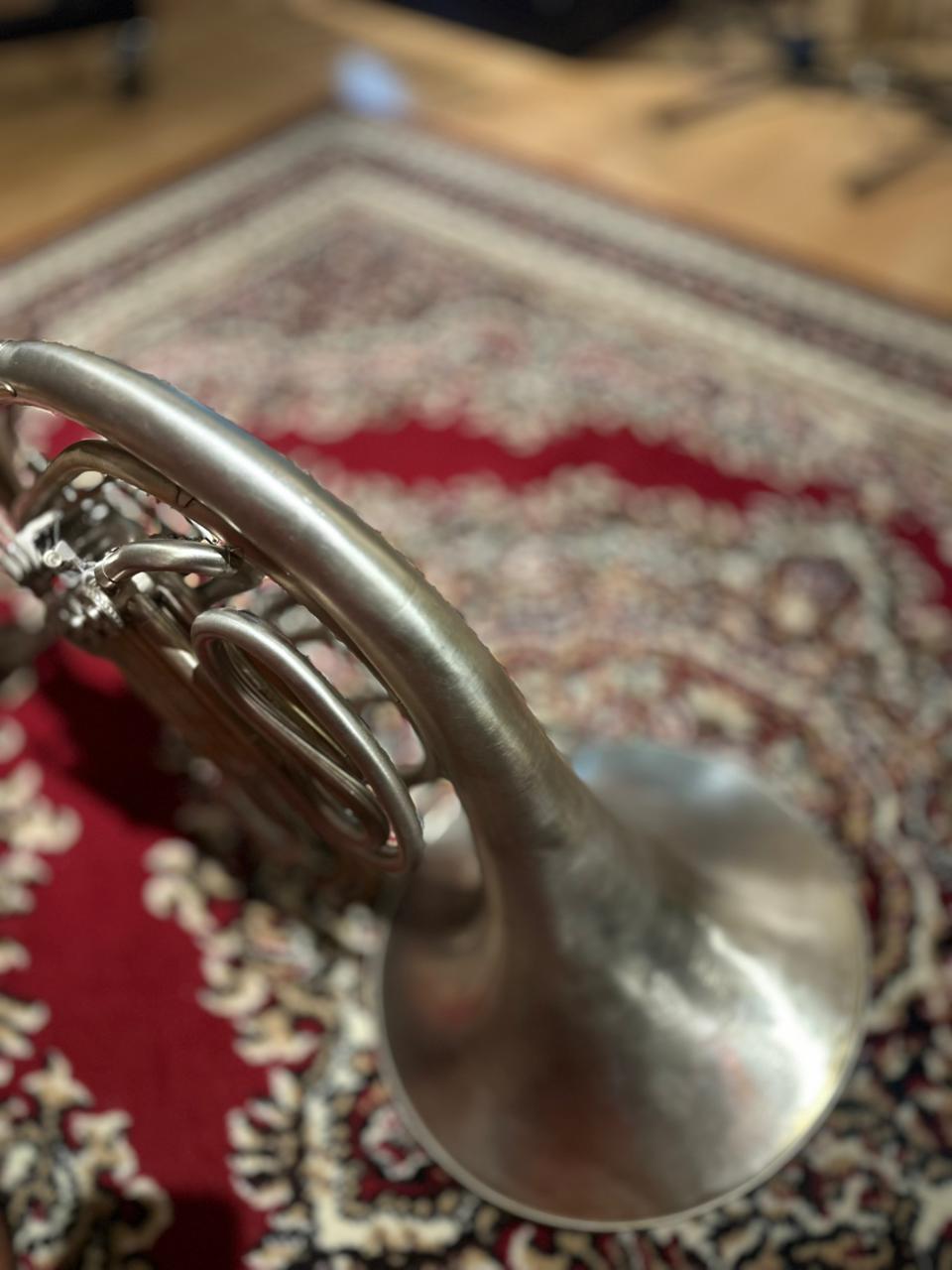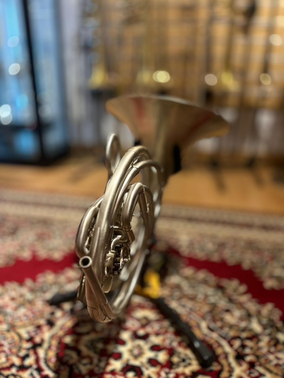 This used instrument is in very good playing condition. The rotary valves operate smoothly, slides function properly, and the horn has been professionally inspected to ensure reliable performance. Cosmetic wear is present, consistent with normal use and age, but does not affect sound or playability.