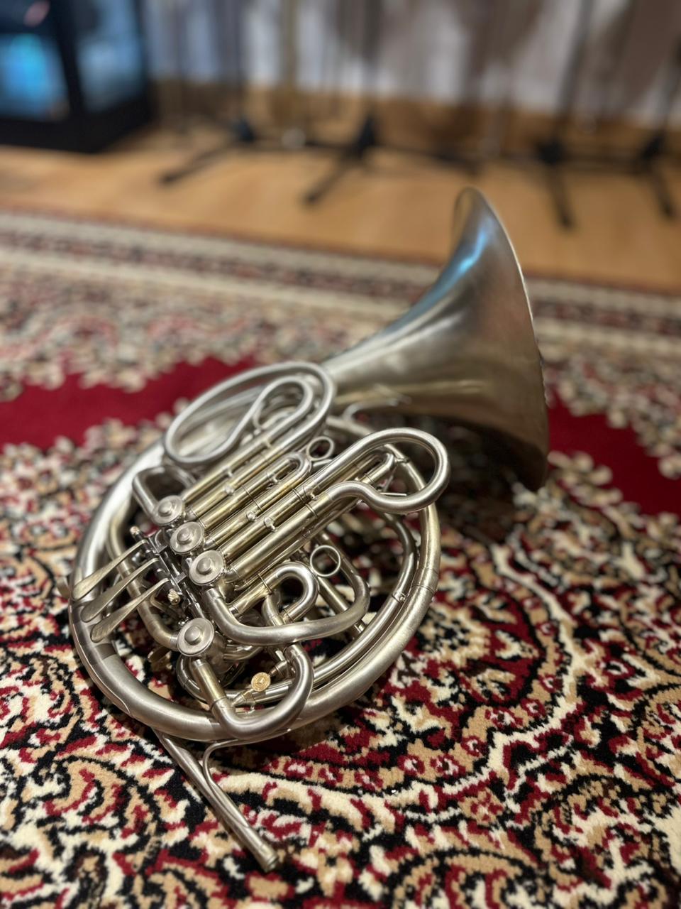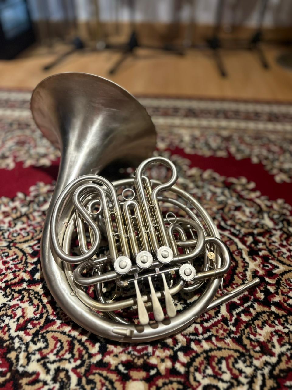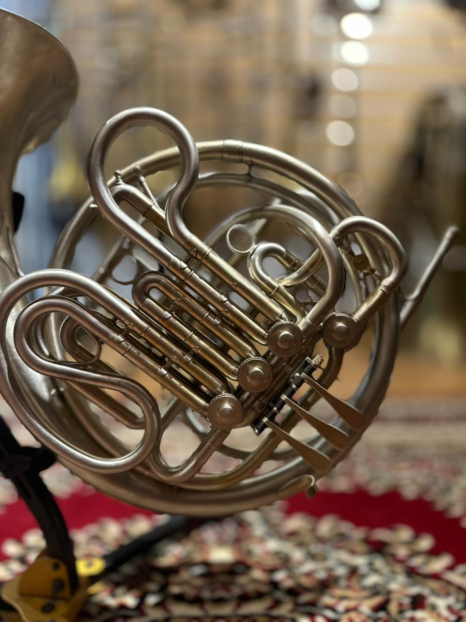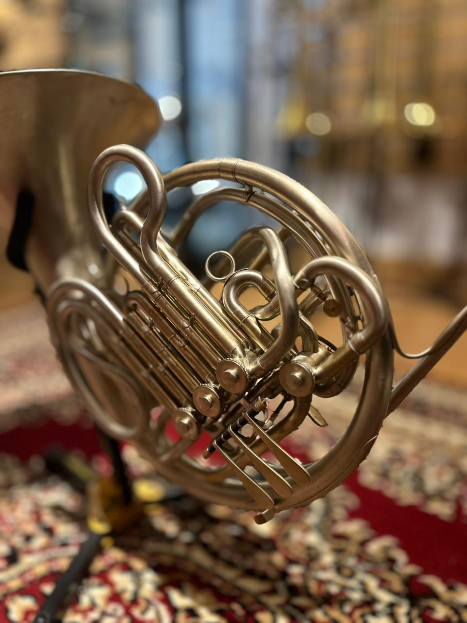 This used instrument is in very good playing condition. The rotary valves operate smoothly, slides function properly, and the horn has been professionally inspected to ensure reliable performance. Cosmetic wear is present, consistent with normal use and age, but does not affect sound or playability.