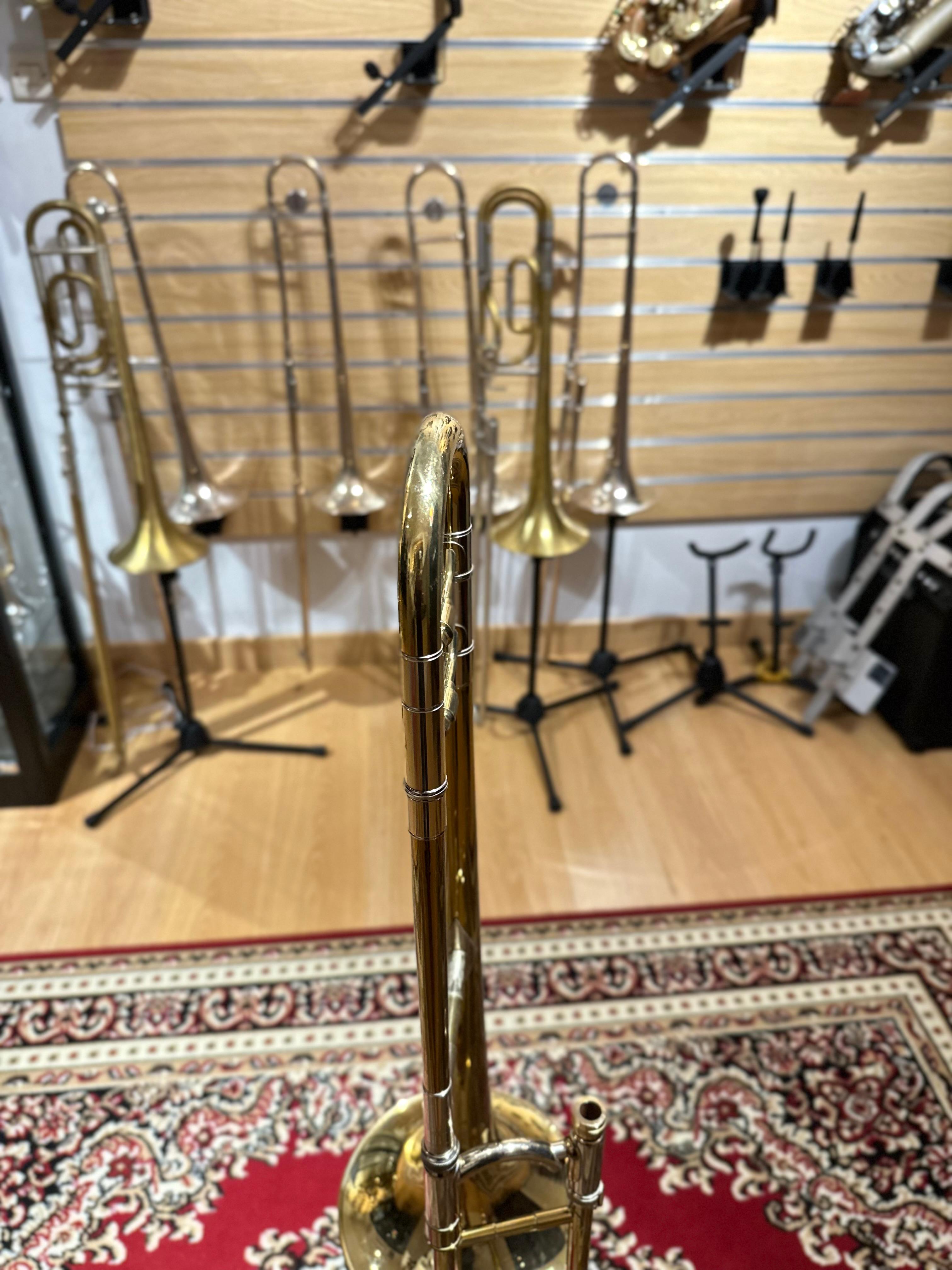 This model includes three interchangeable leadpipes, allowing the player to adjust response and feel according to personal preference and performance needs. The chrome-plated nickel silver inner handslide tubes provide smooth, fast slide action for precise control.