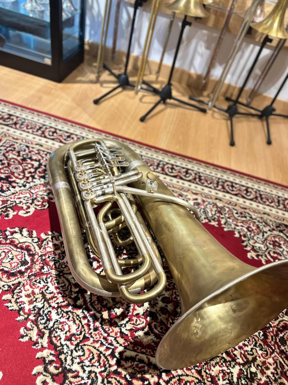 Finished in raw brass, this tuba offers a more open and resonant response, favored by many professional players for its organic feel and lively vibration. Over time, the raw brass develops a natural patina, giving each instrument a unique character.