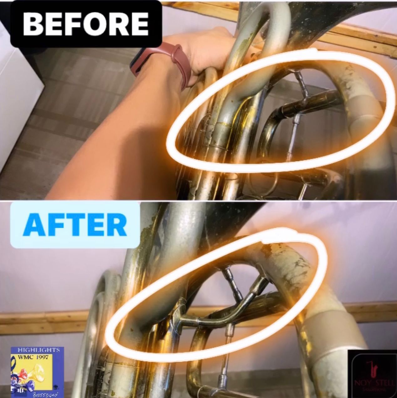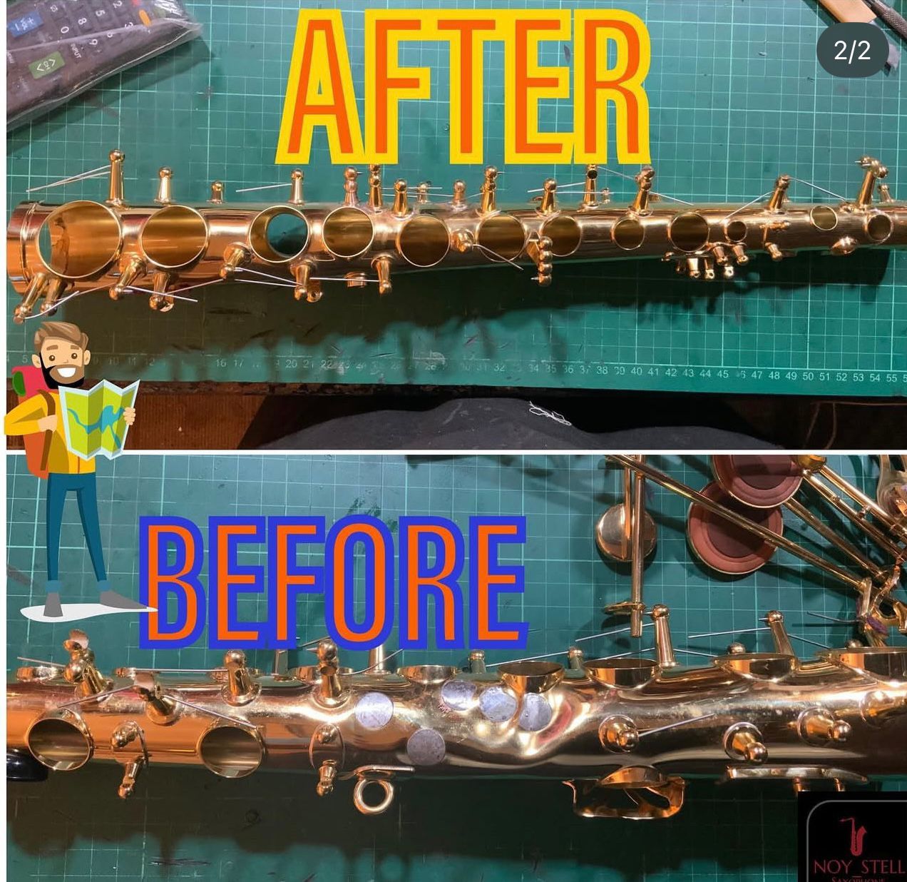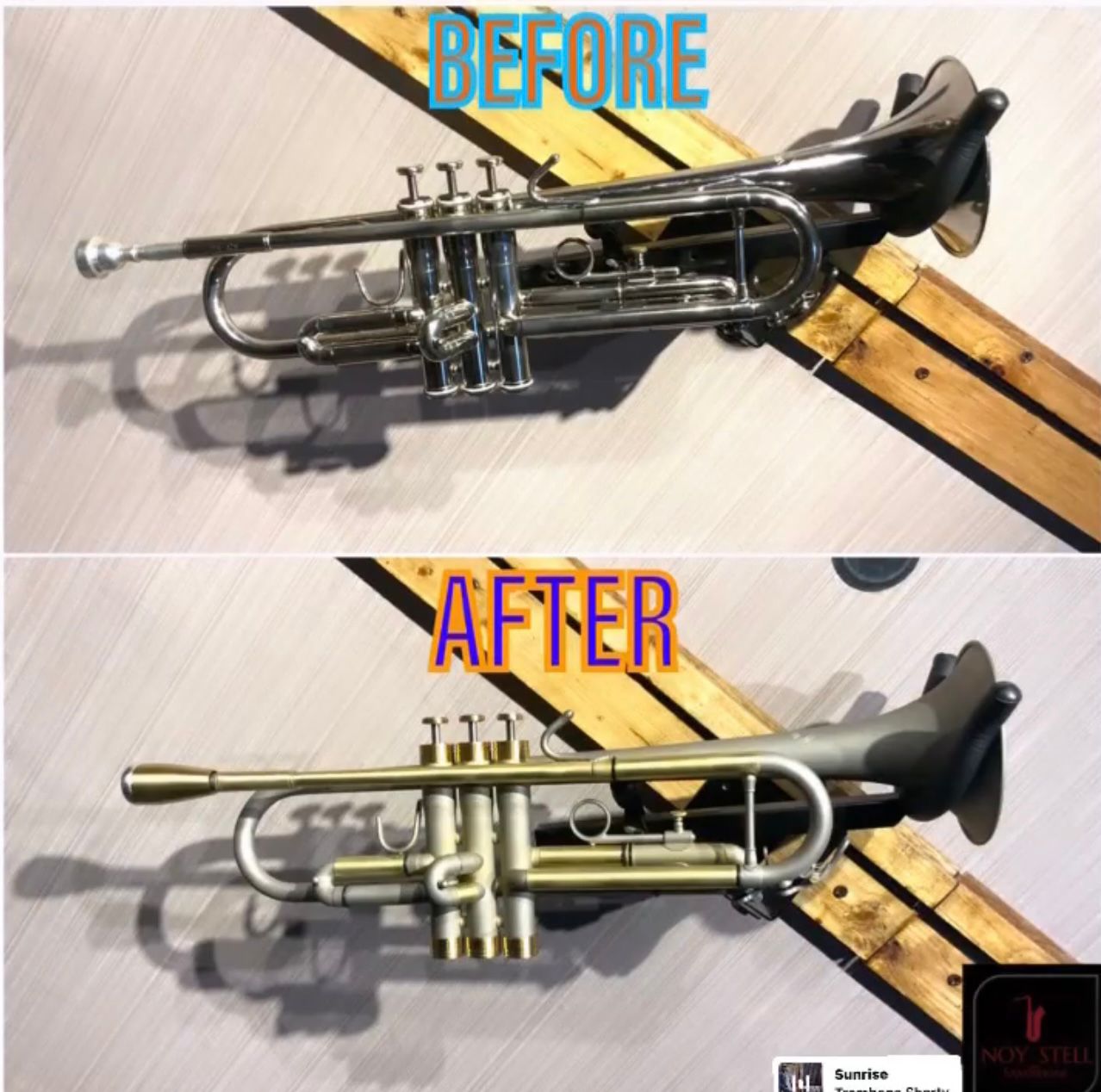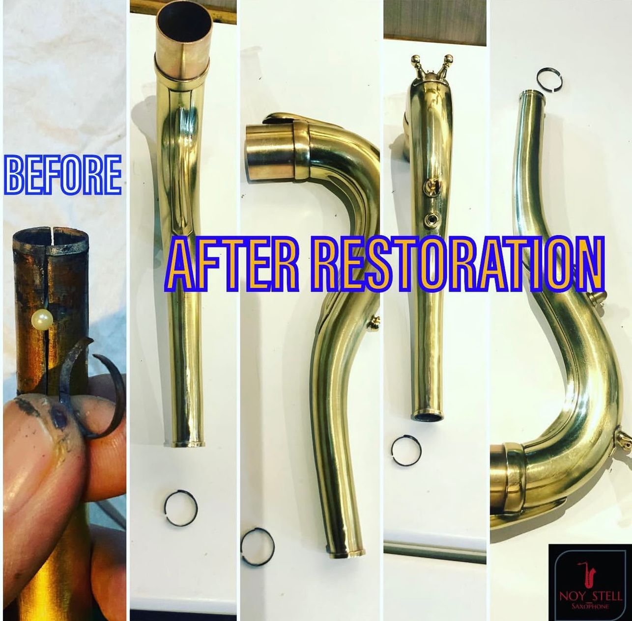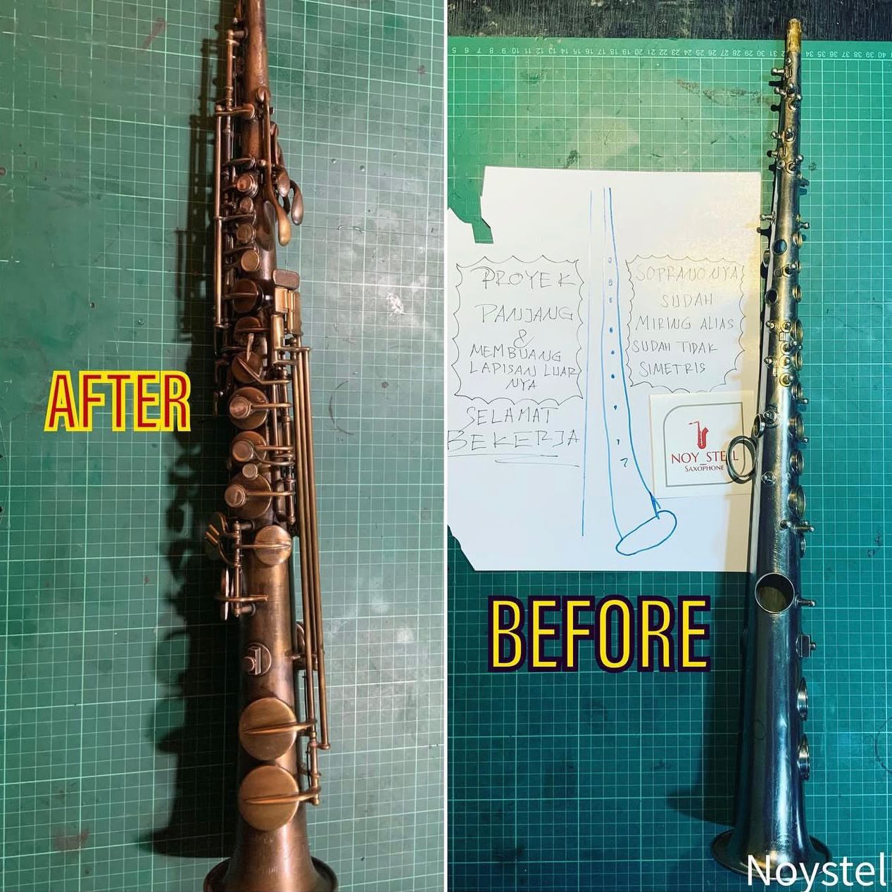 Before and after restoration handled by Nosytell Music Store.